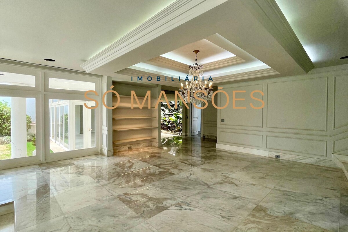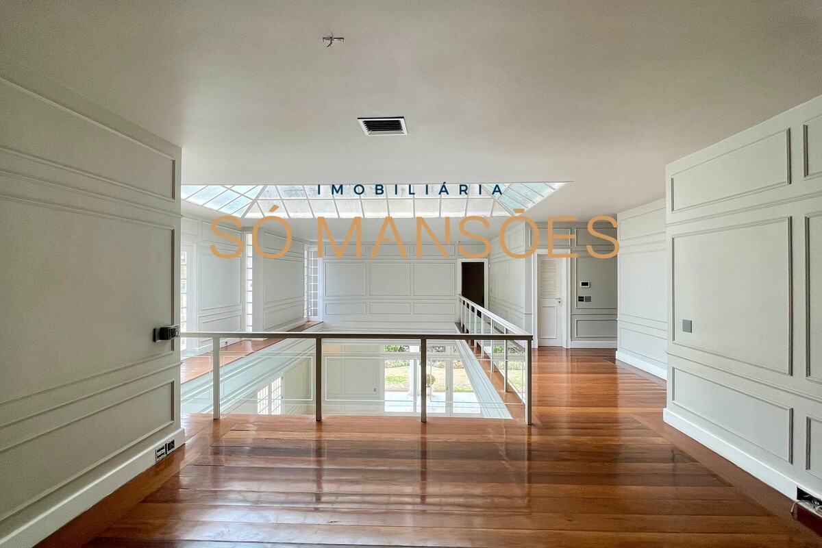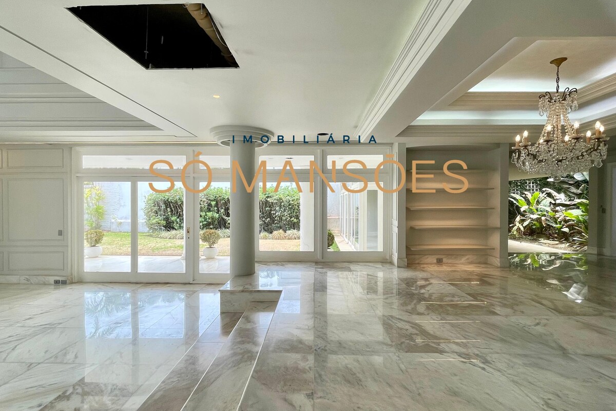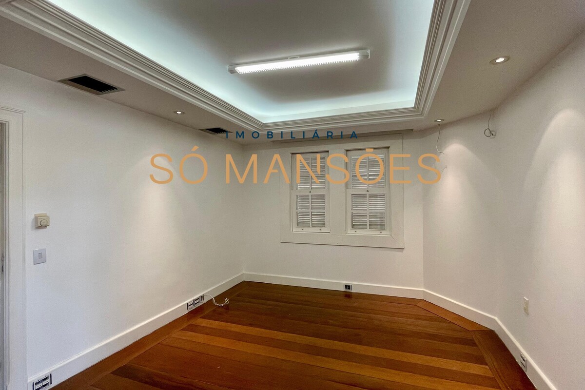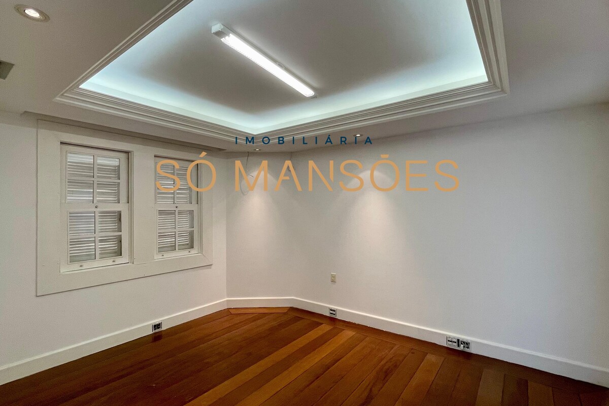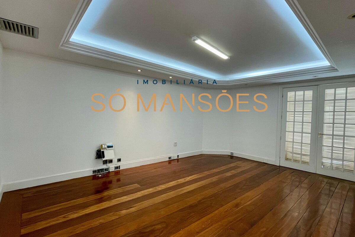 No primeiro pavimento, o imóvel conta ainda com escritório, lavabo, bar, cozinha e sala de TV com jardim interno. São ambientes que podem ser facilmente adaptados para setores administrativos, salas de reunião ou áreas operacionais.