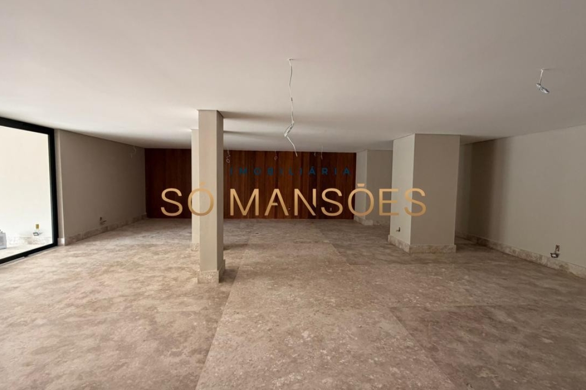 A área social encanta pela harmonia dos espaços e pela integração com a piscina revestida no mesmo mármore da área interna, criando um visual contínuo, elegante e exclusivo.