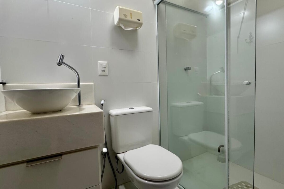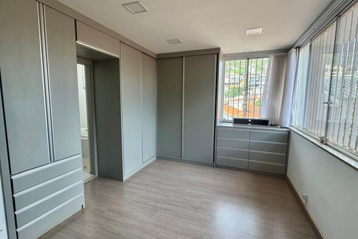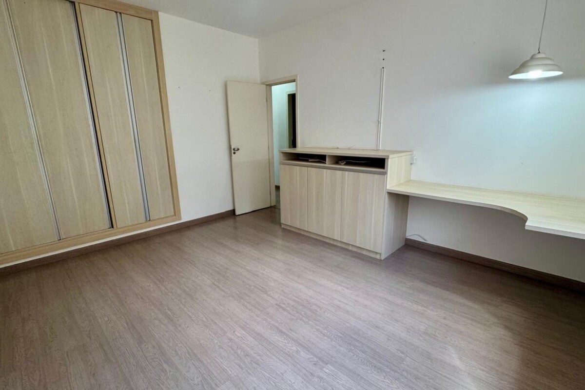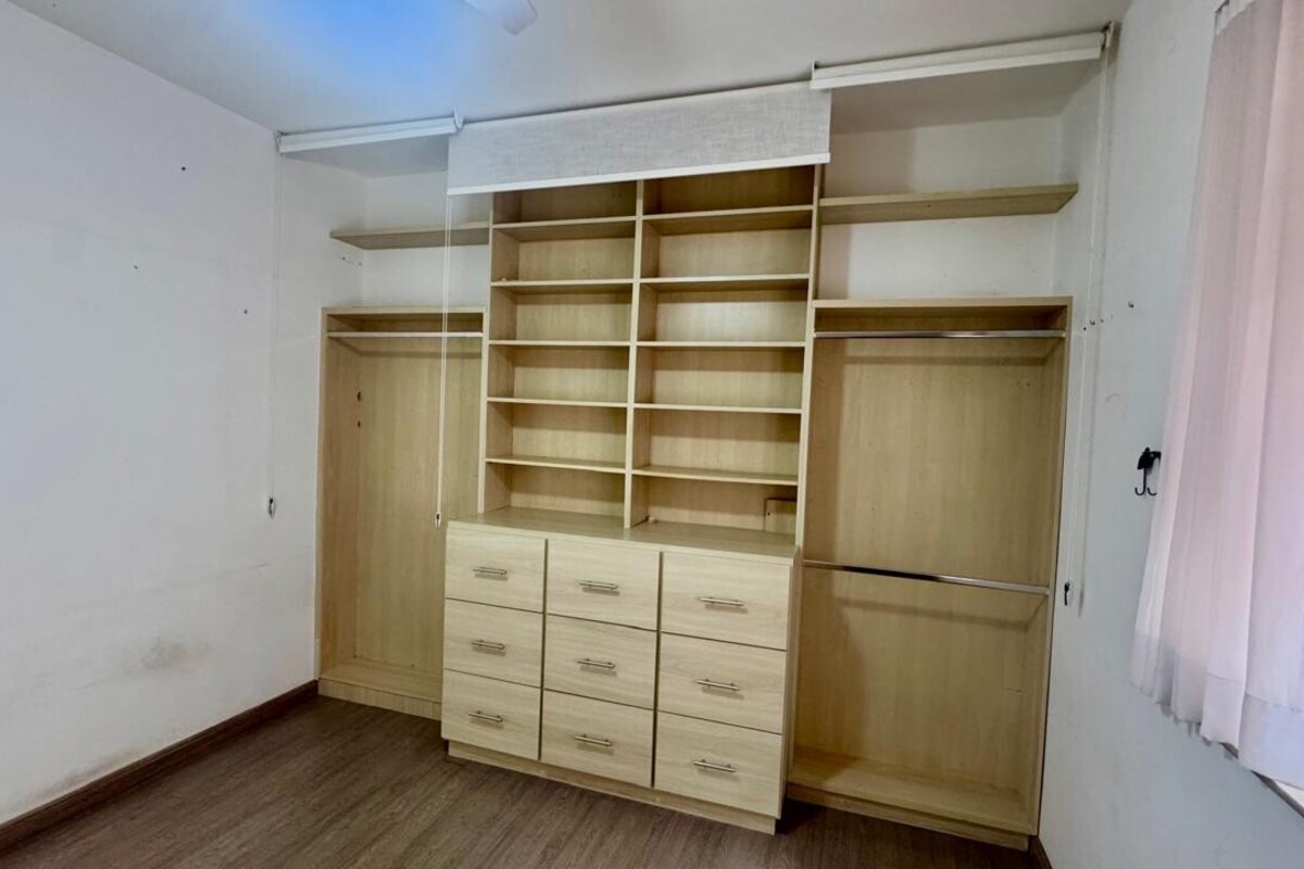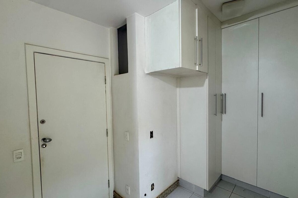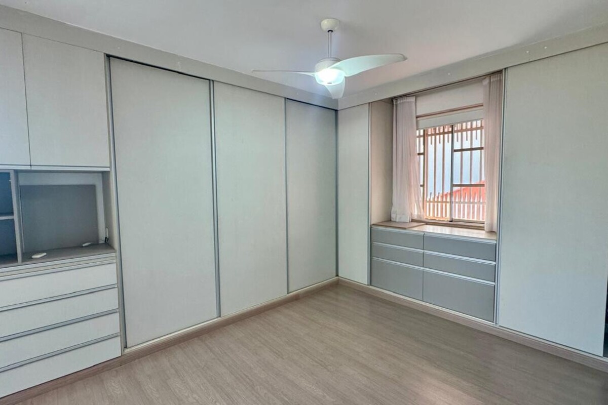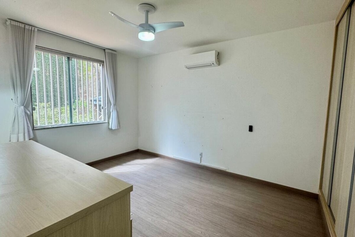 A área íntima dispõe de quatro quartos espaçosos, todos com armários planejados e ar-condicionado. A suíte master se destaca pelo conforto, com banheira de hidromassagem e excelente espaço de armários. O corredor conta ainda com rouparia, garantindo praticidade à rotina.