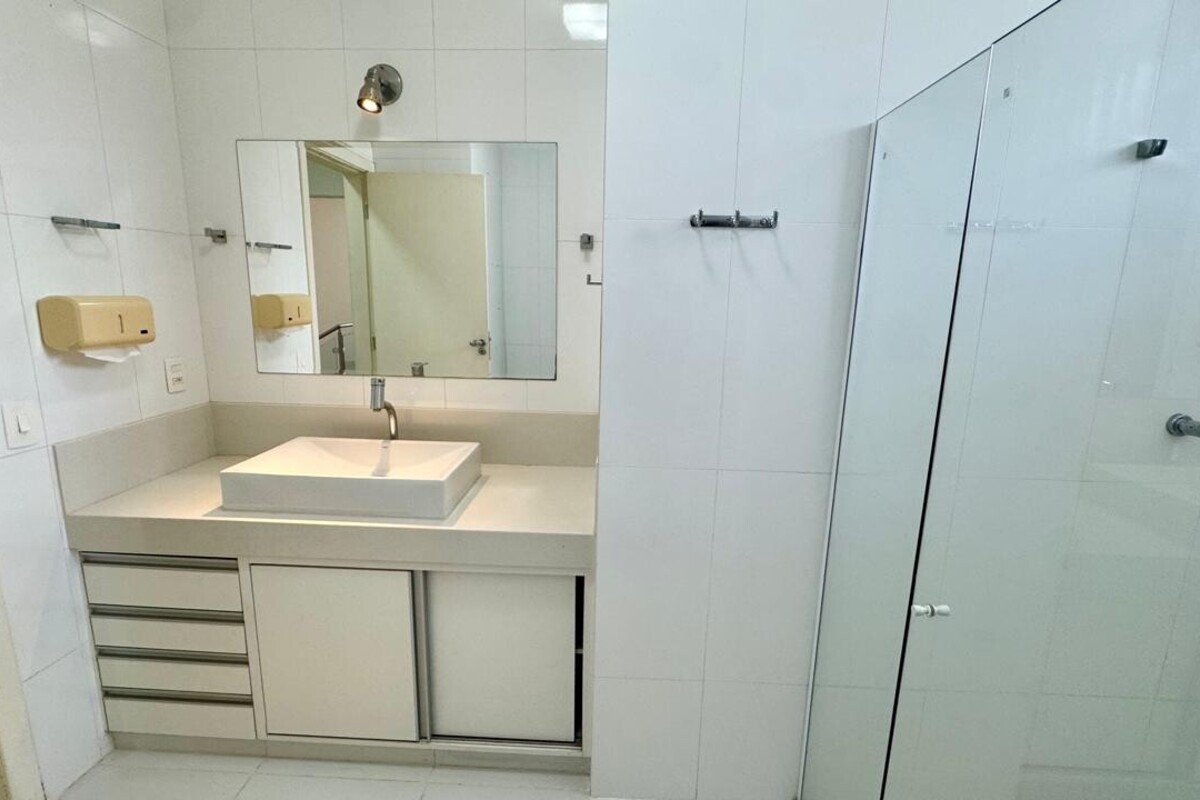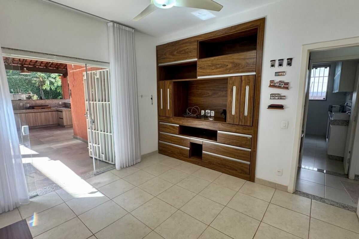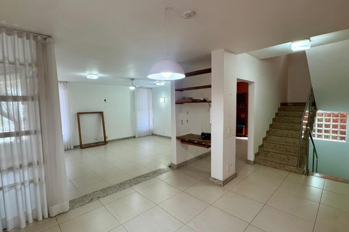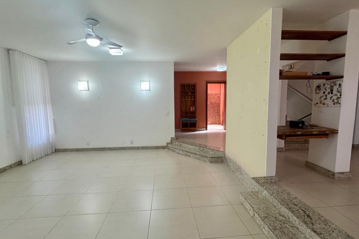 No subsolo, o imóvel conta com dois quartos adicionais e um banheiro, oferecendo versatilidade para uso como espaço de hóspedes, academia, ateliê ou apoio.