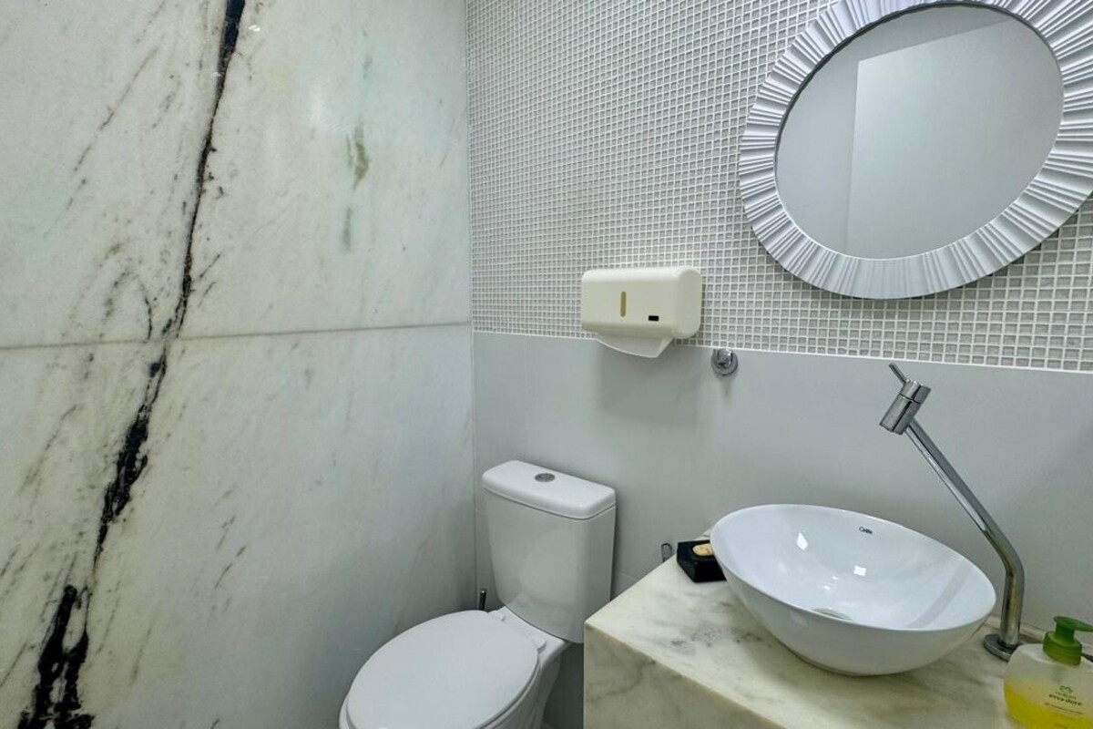 Na área social, os ambientes são bem distribuídos e acolhedores. A casa conta com ampla sala para dois ambientes com piso em porcelanato, sala íntima, sala de jantar integrada, lavabo elegante e um escritório funcional, ideal para home office.