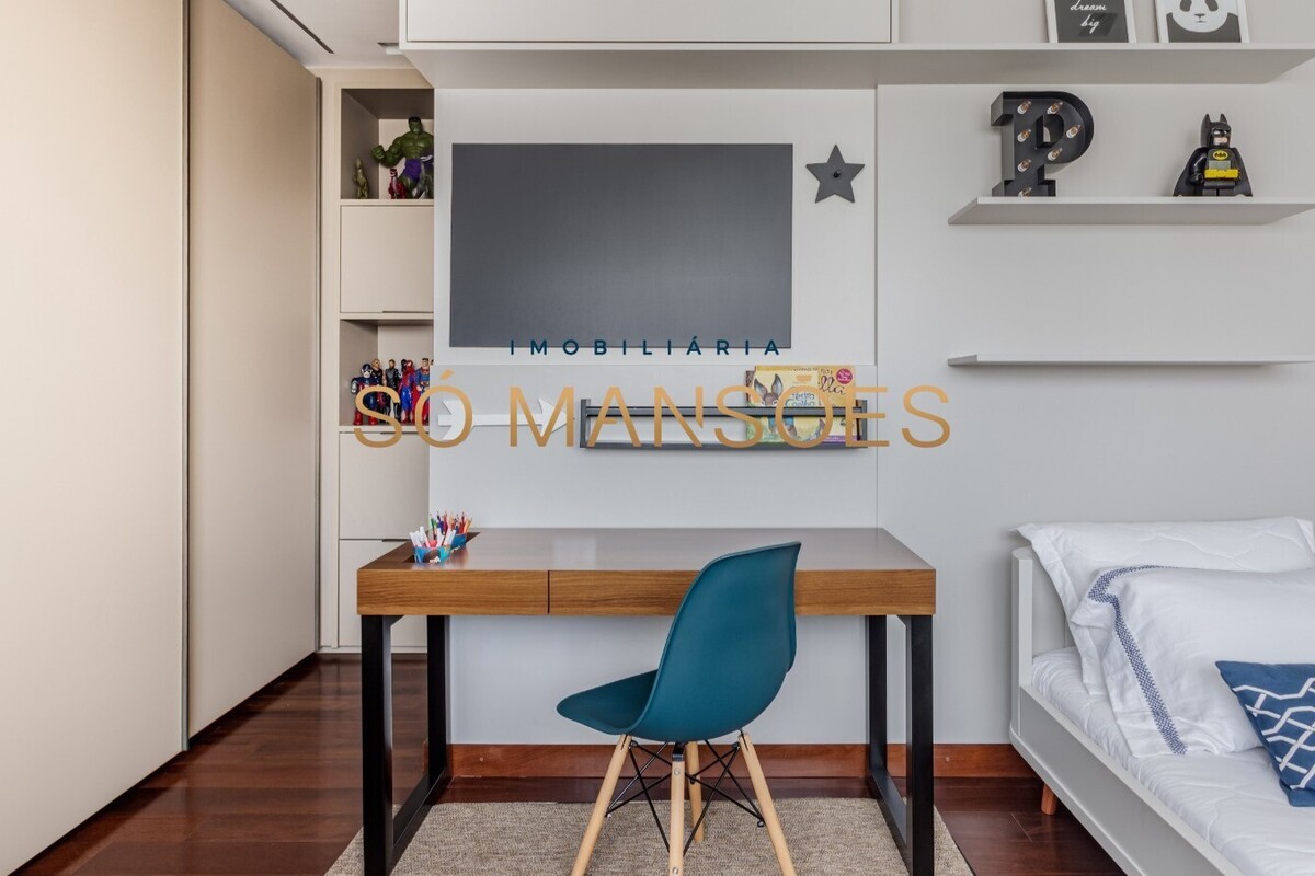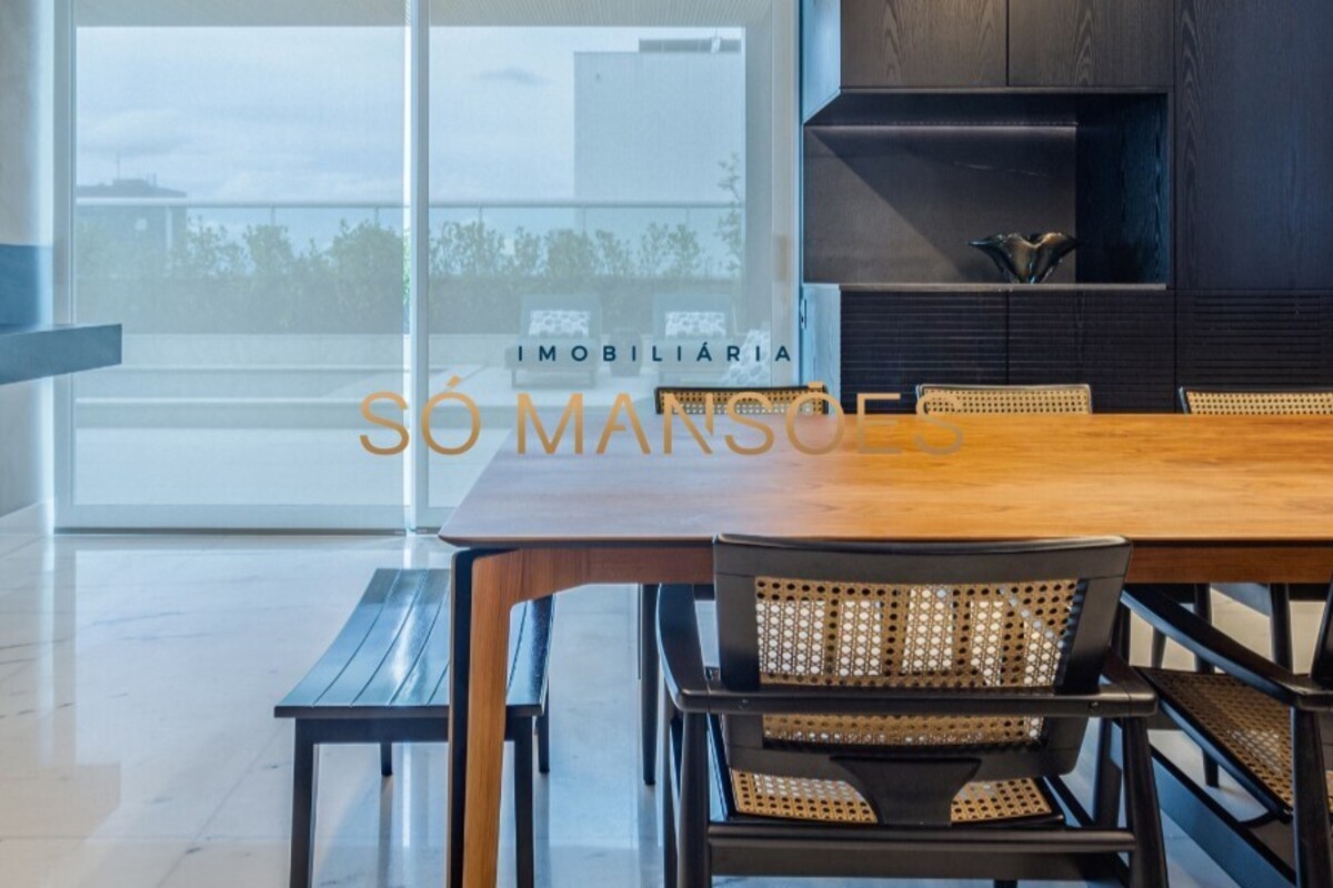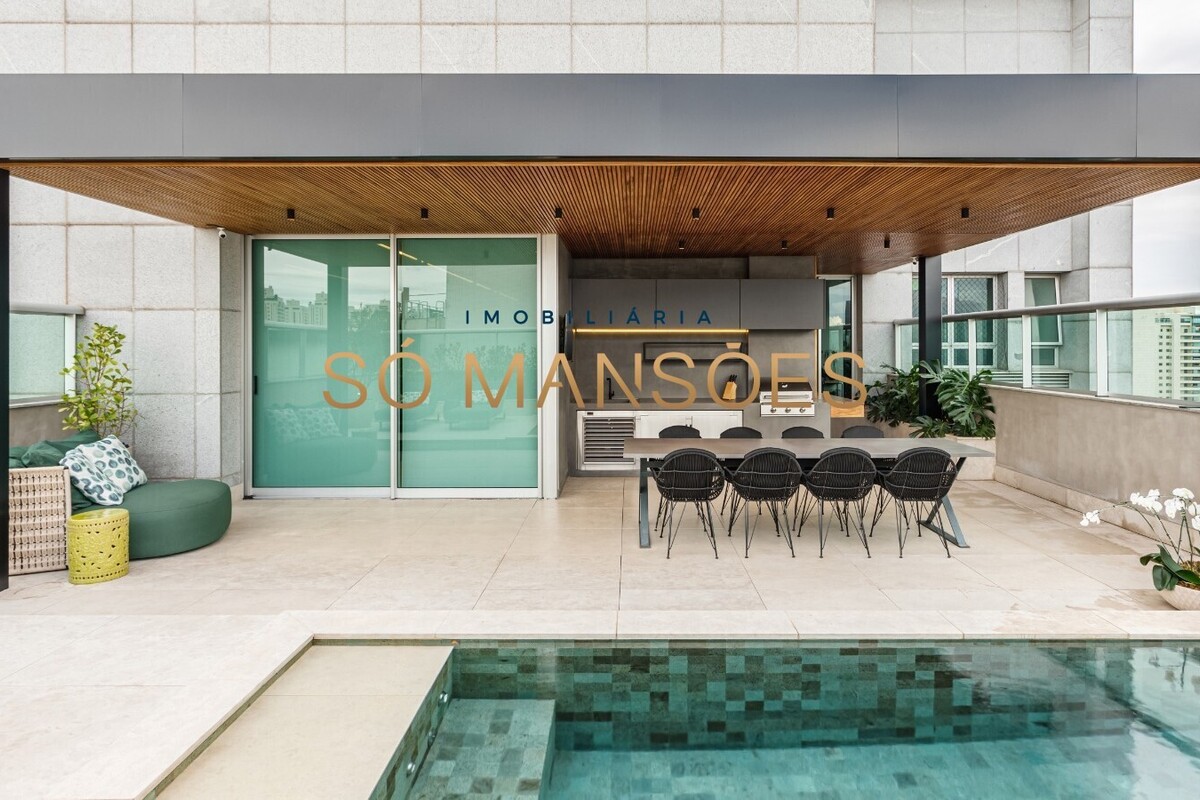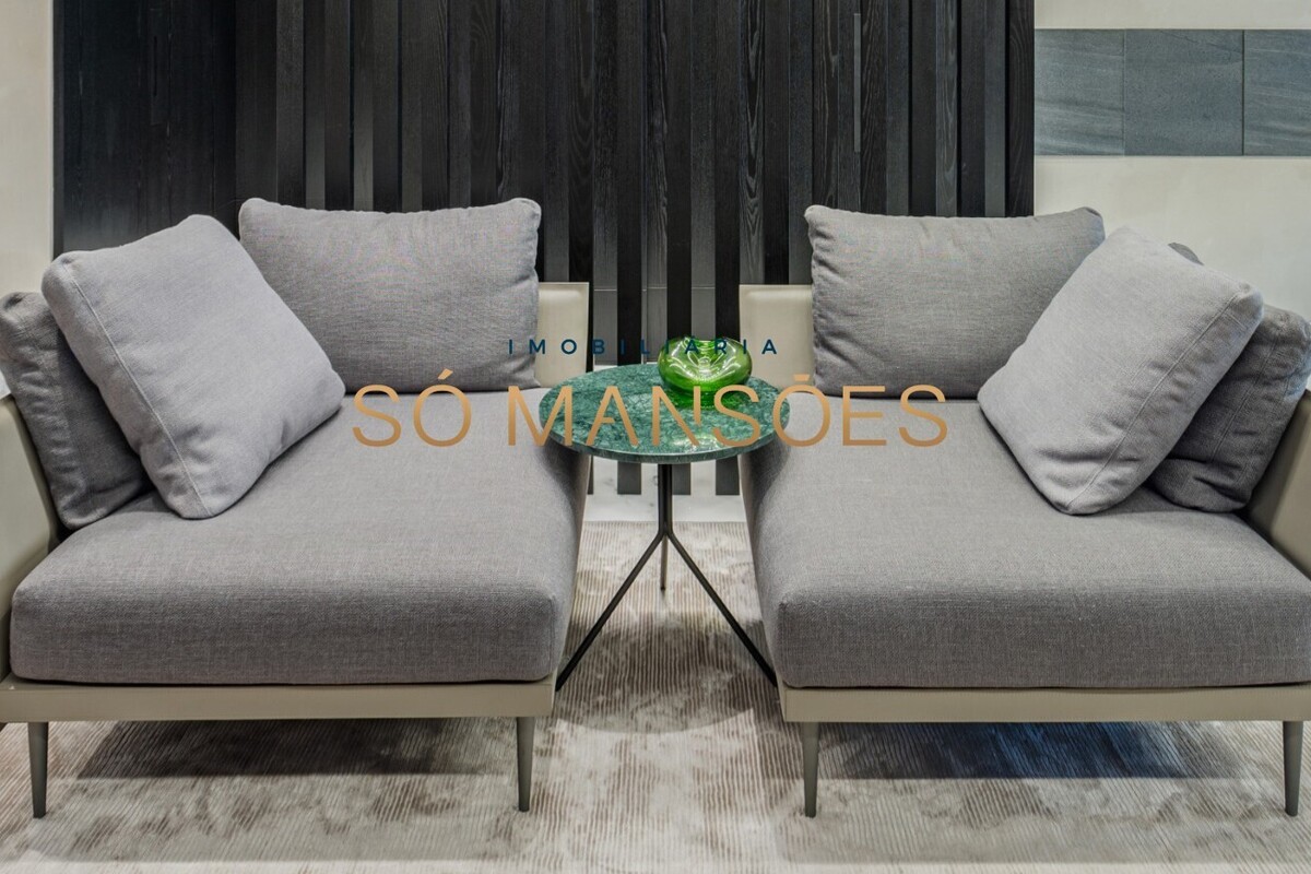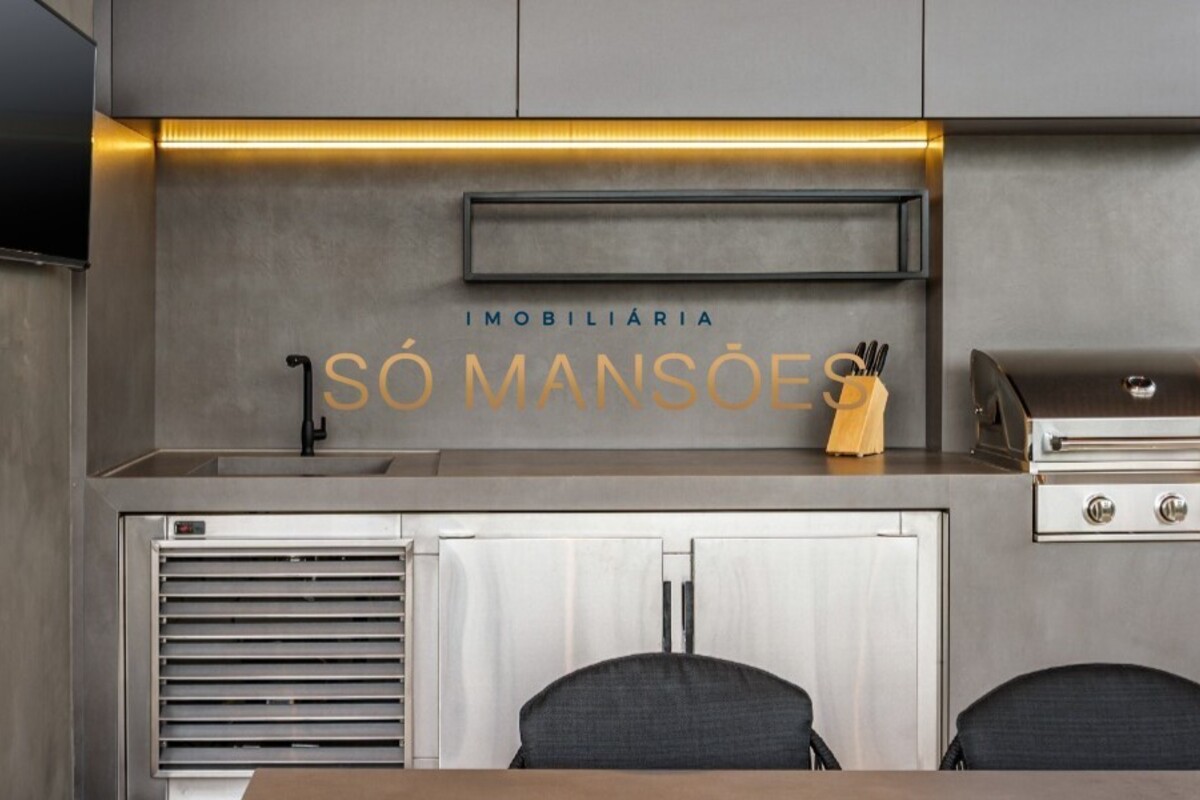 A área externa foi planejada para receber com praticidade e elegância, dispondo de espaço gourmet com mesa e bancada em Ariostea, churrasqueira, freezer industrial e piscina aquecida. O projeto luminotécnico é integralmente assinado pela A.dearte, valorizando os ambientes internos e externos. O imóvel conta ainda com seis vagas de garagem e portaria 24 horas.