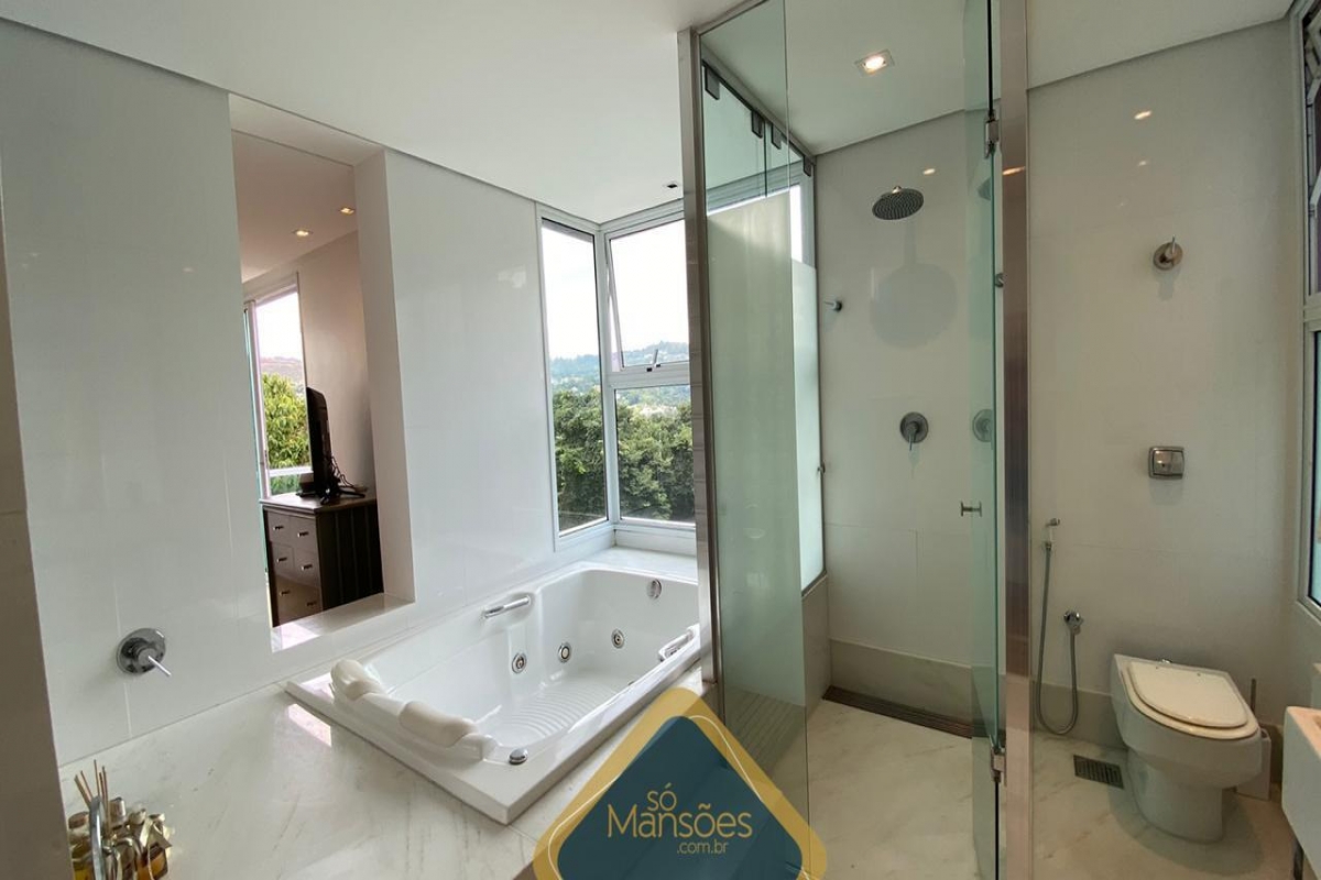 Possui aquecimento solar independente para sistema de água da casa e piscina, lareira a gás, sistema de pressurização da água para o segundo pavimento, área externa revestida em granito acidado corumbazinho (garagem, varandas, deck piscina escadas de acesso).