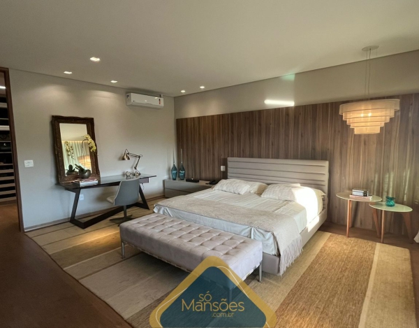 A casa possui elevador que atende os 3 pavimentos, poço artesiano, energia fotovoltaica, aquecimento solar, projeto luminotécnico e sistema de som. Os acabamentos são de alta qualidade, com mármore, granito, madeiras e porcelanato.