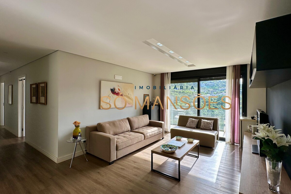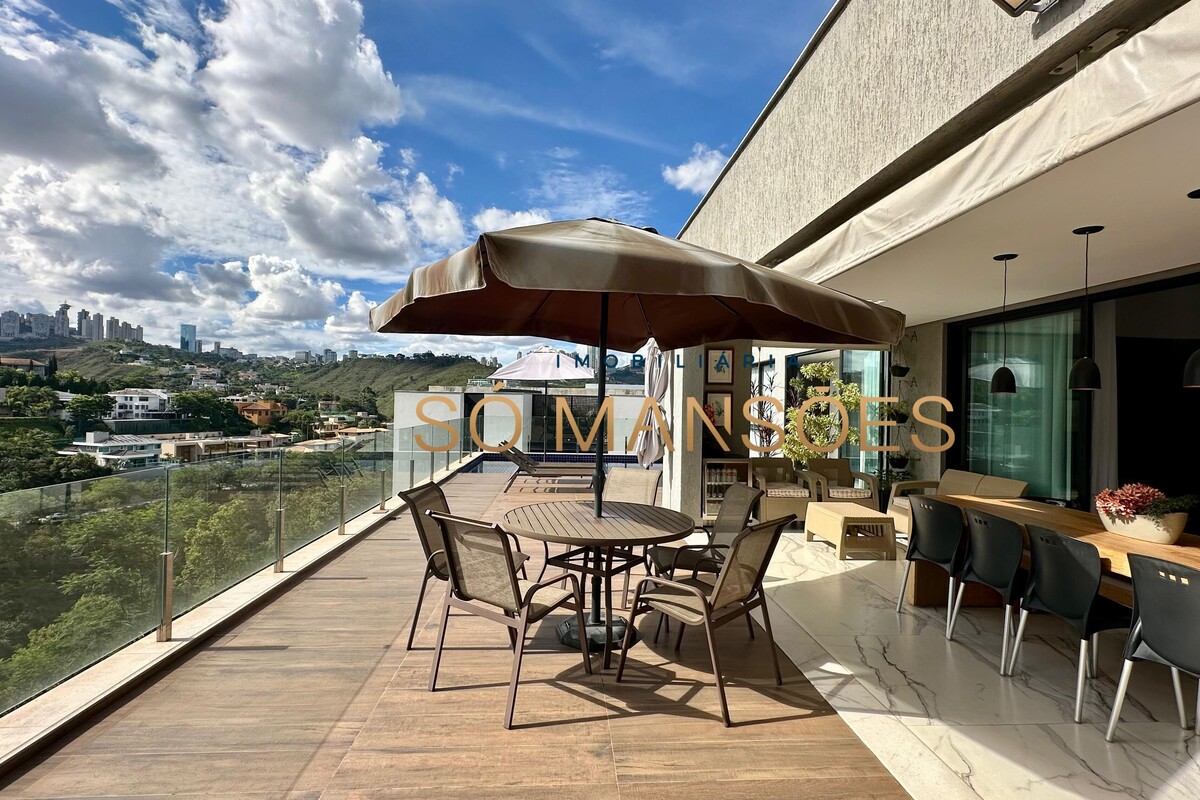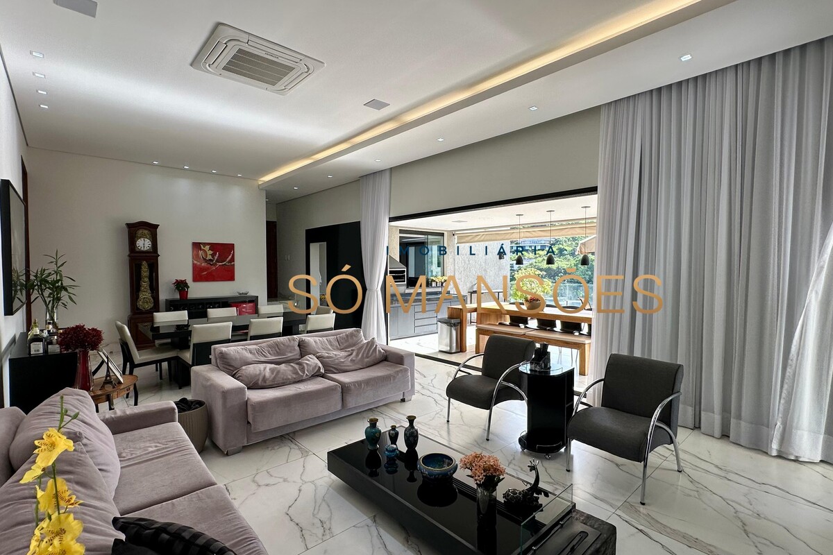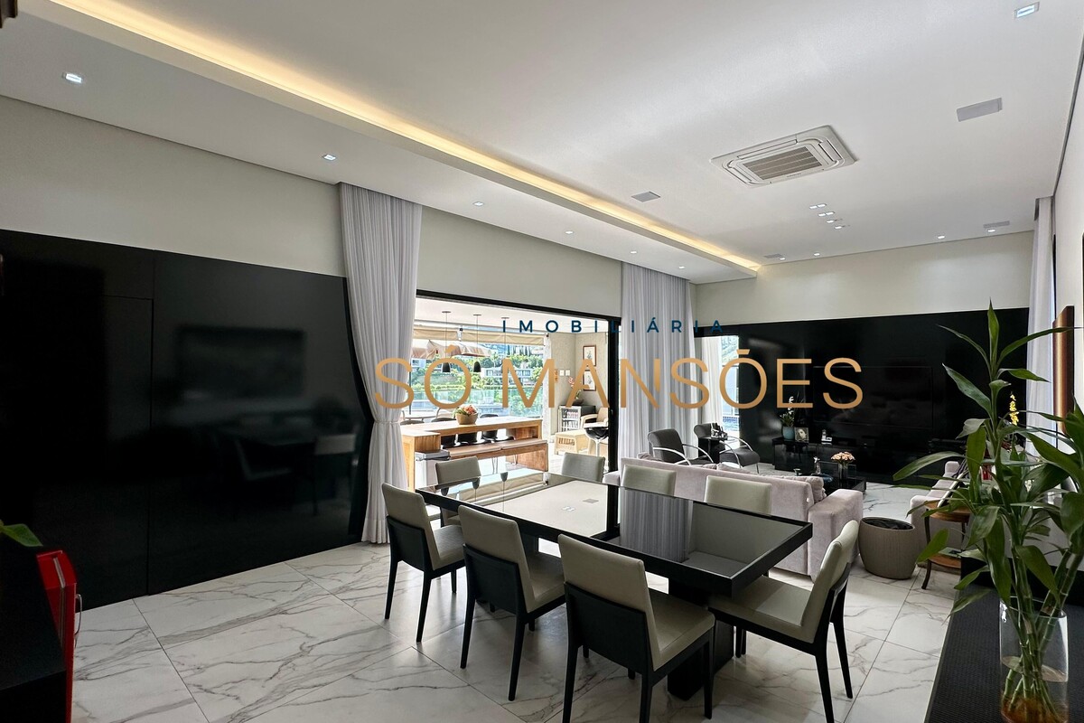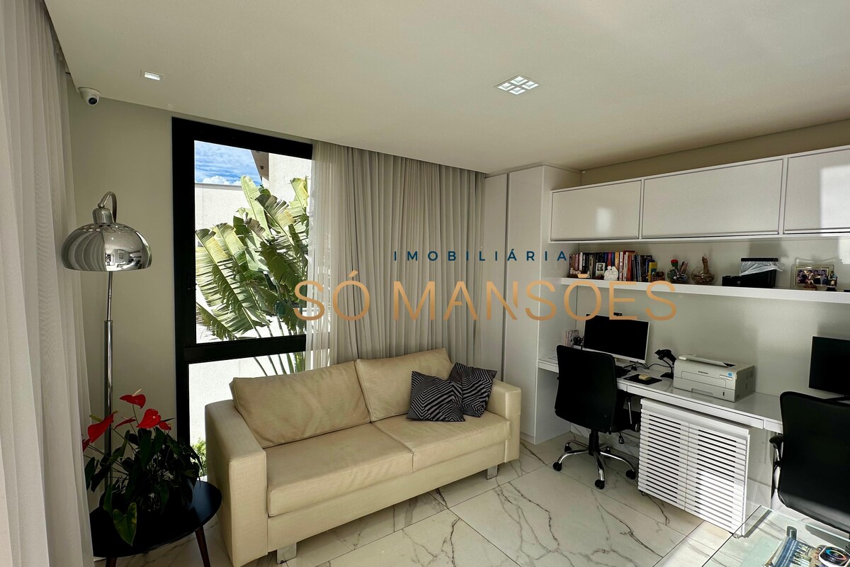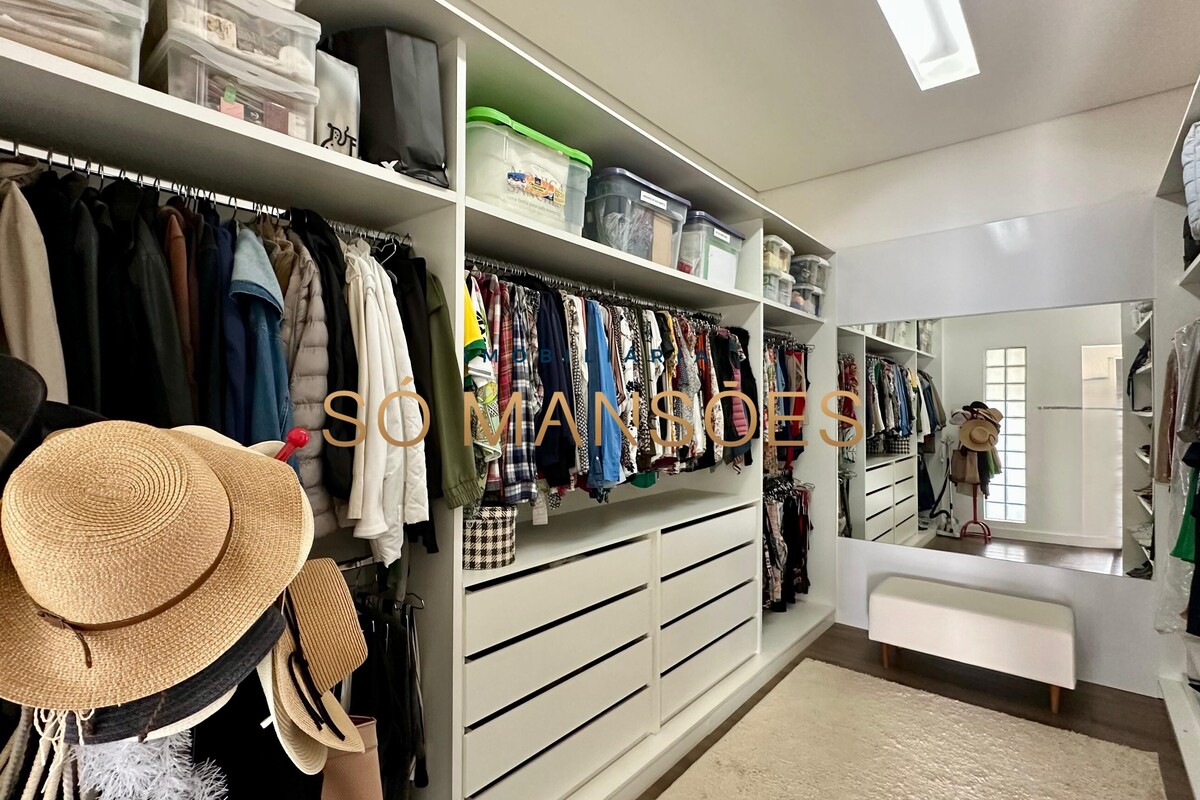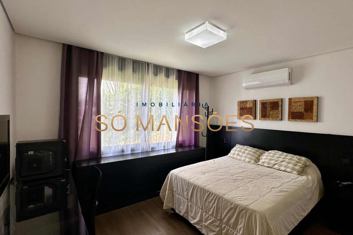 No pavimento íntimo, a casa conta com uma sala de TV, duas suítes, sendo a suíte master com 2 amplos closets e banheiro com hidromassagem, além de duas semi-suítes. Três dos quartos e a sala de TV possuem varanda, permitindo aproveitar a vista e o pôr do sol. O imóvel dispõe ainda de dependência completa para funcionária, complementando a estrutura residencial.