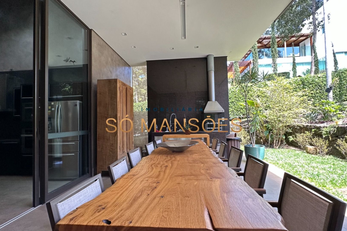Sala para 2 ambientes ampla e com pé direito duplo, cozinha americana com bancada de madeira de demolição totalmente integrada com espaço gourmet, escritório e lavabo.
