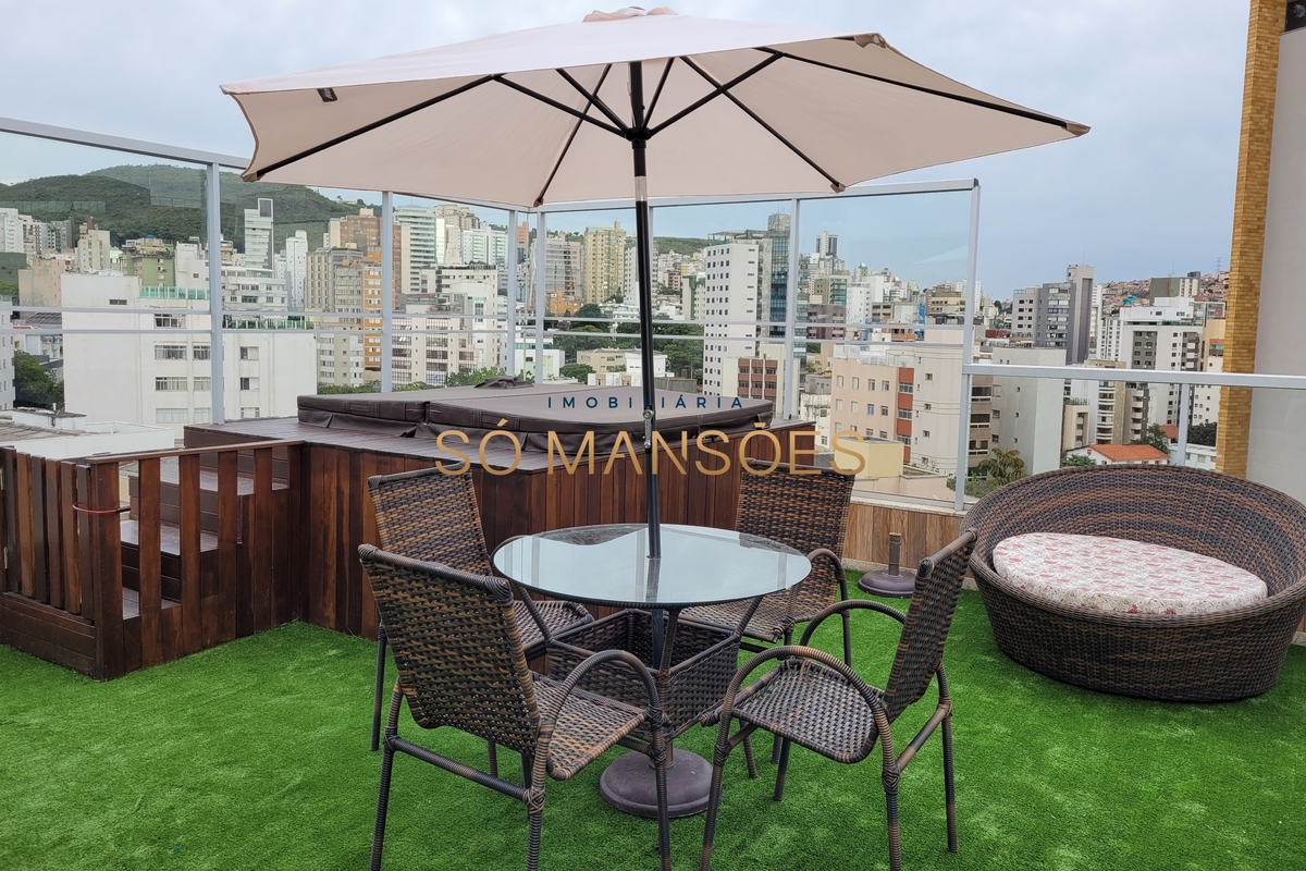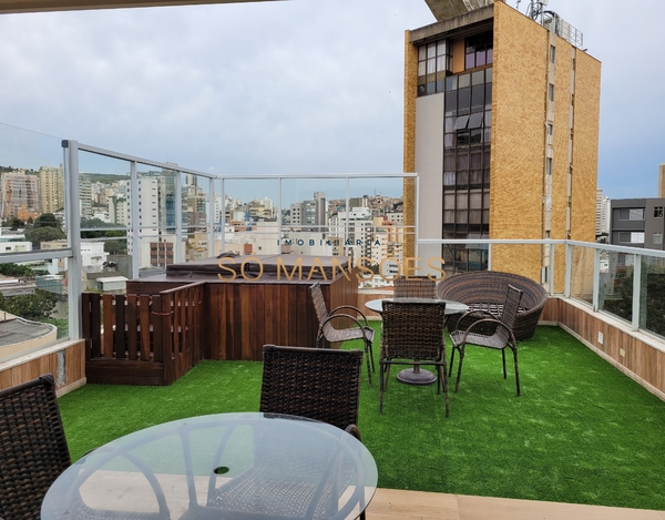 Cobertura, 185 m², 3 quartos, sendo 1 suíte com varanda.