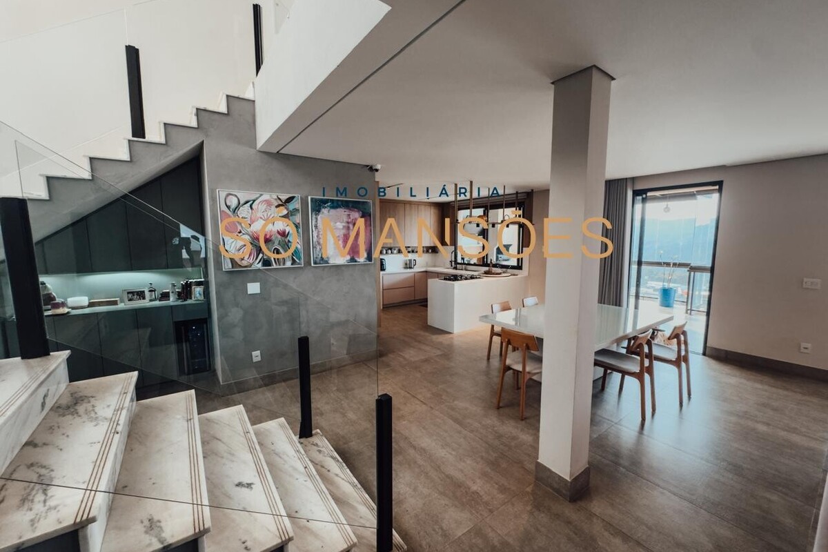 Totalmente mobiliada, a propriedade possui salas amplas e conectadas à área externa, criando uma sensação de fluidez entre os espaços. A cozinha em nanoglass e o espaço gourmet com churrasqueira foram planejados para atender com praticidade e sofisticação, ideais para o convívio em família e momentos de lazer.