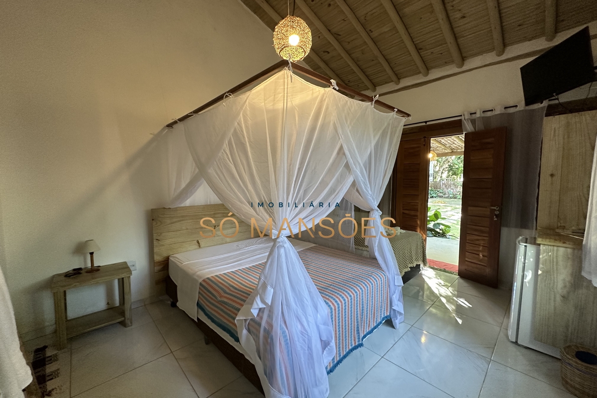 Pousada com 8 suítes à venda na Estrada dos Macacos - Trancoso/BA. Pousada com 8 suítes sendo 6 com varanda, cozinha ampla com espaço para refeições, lavanderia, piscina e amplo quintal com possibilidade de ampliação. O imóvel será vendido mobiliado. Acabamentos em cimento queimado, granito, porcelanato e madeiras. O terreno possuí 2000m² e tem aproximadamente 484m² de área construída. A pousada está em funcionamento. Obs.: O valor do imóvel pode ser alterado sem aviso prévio. Por este motivo, confirme com nossos consultores.