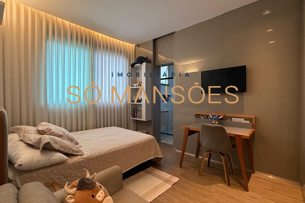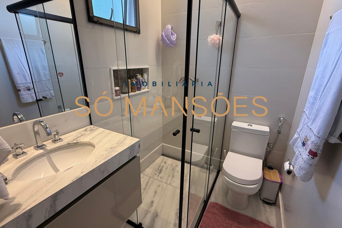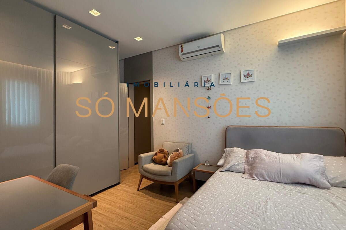 São 4 suítes amplas com ar-condicionado, sendo a suíte máster equipada com closet e acabamentos de alto padrão.