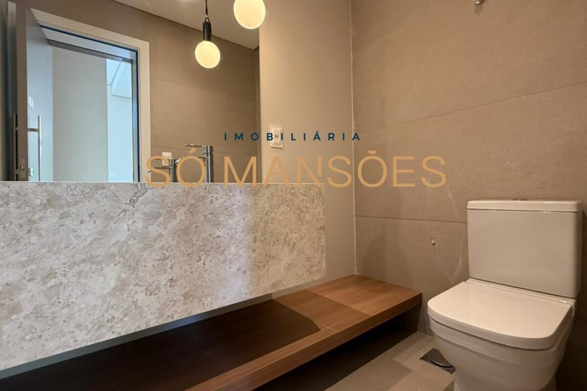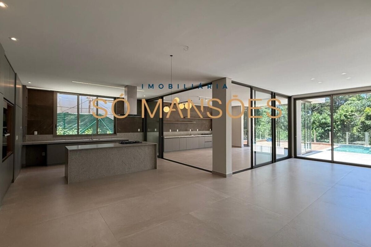 A área social dispõe de sala ampla para dois ambientes, com pé-direito alto e integração direta com a cozinha, o espaço gourmet e a adega. O layout favorece a circulação e a fluidez do uso diário. Há também lavabo, área de serviço, DCE e um espaço adicional que pode ser utilizado como escritório, oferecendo praticidade para quem precisa de um ambiente reservado de trabalho.