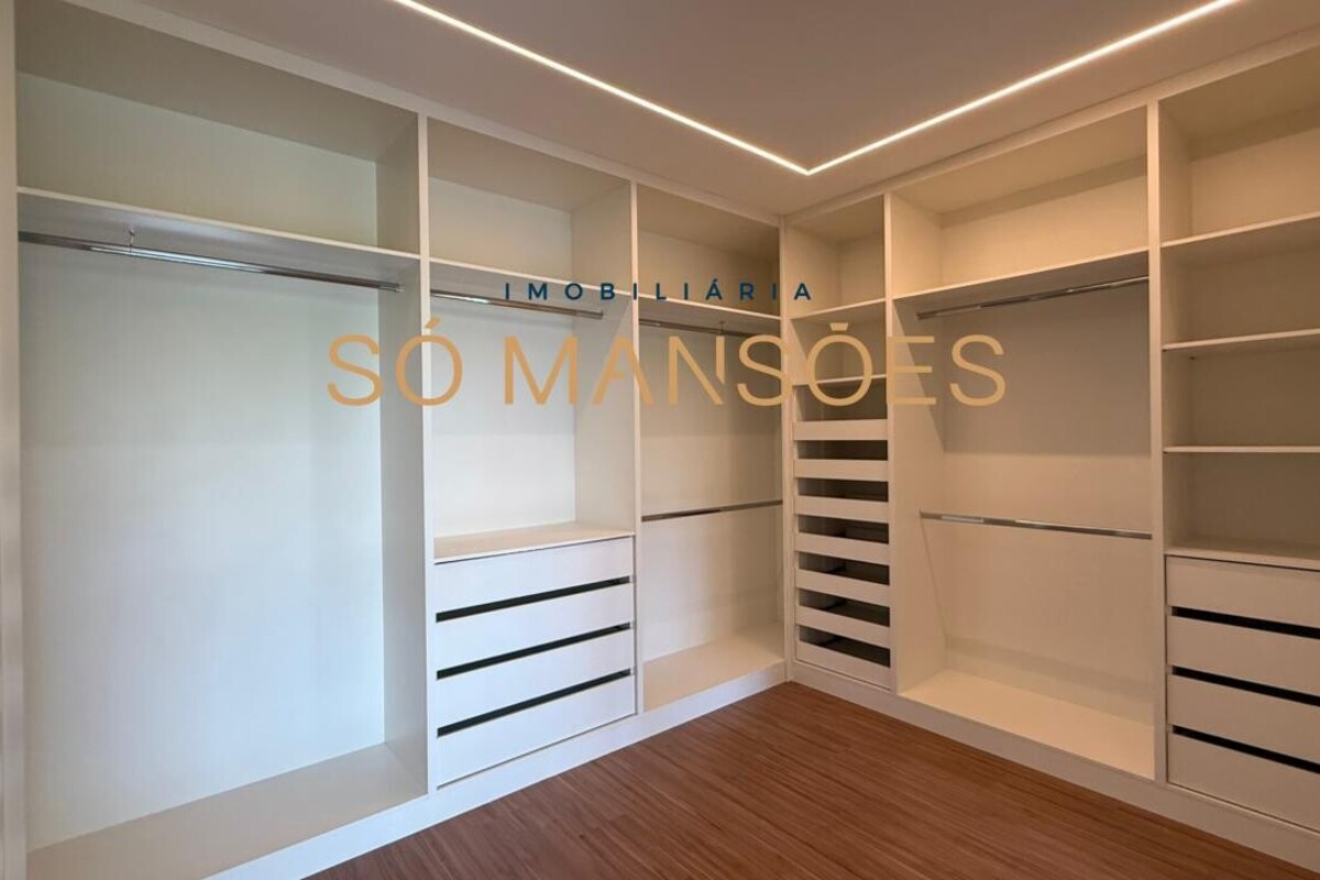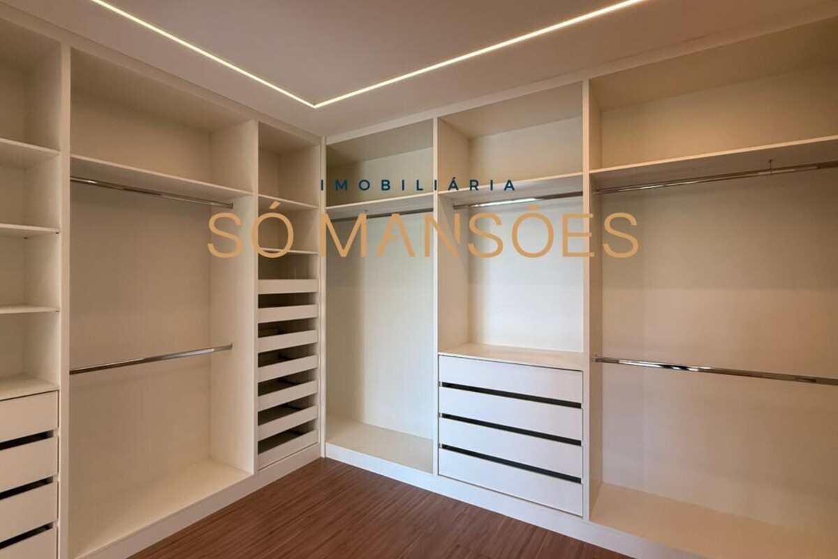 A parte íntima conta com quatro suítes amplas. Todas possuem armários e preparação para instalação de ar-condicionado. A suíte master inclui closet e foi planejada para garantir conforto e organização. A cozinha e a área de serviço já estão equipadas com armários e eletrodomésticos, proporcionando maior comodidade.