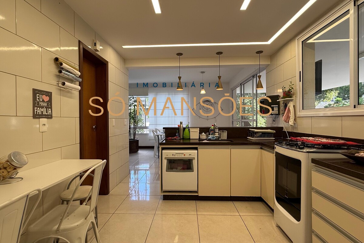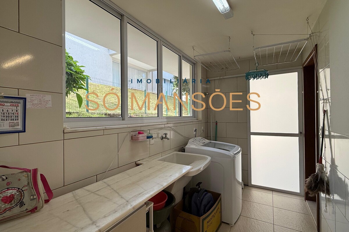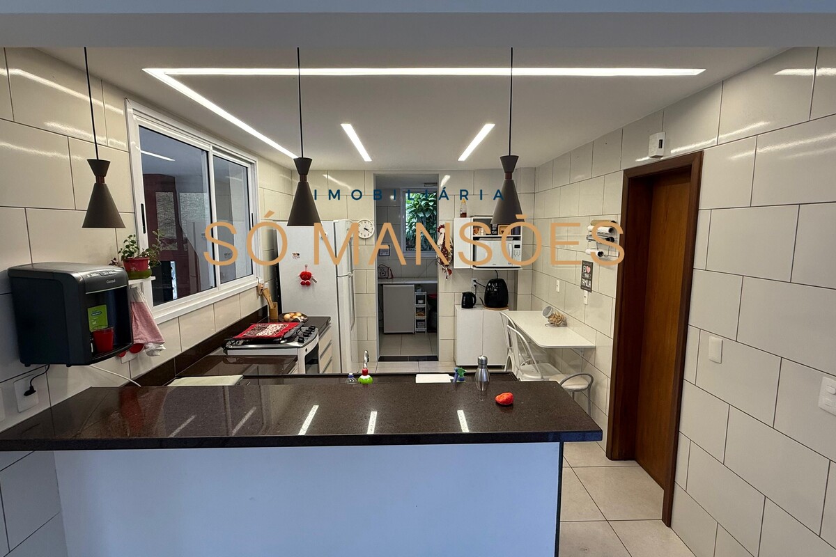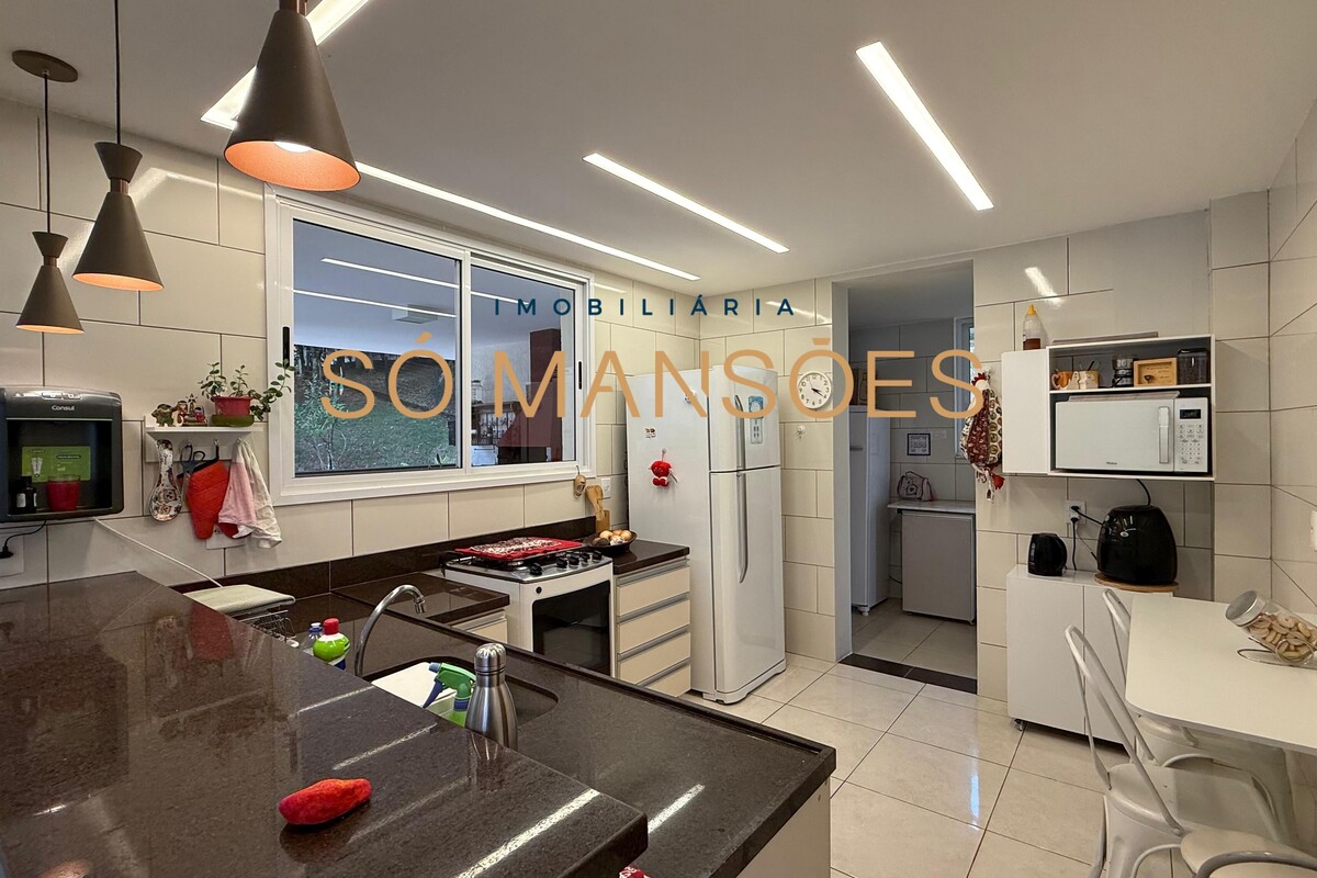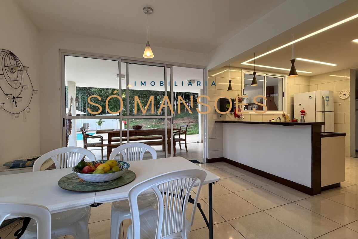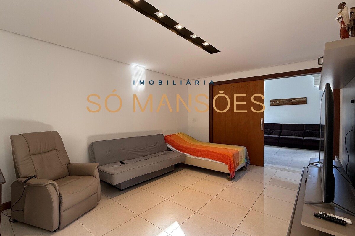 A área social conta com sala ampla para três ambientes e pé-direito alto, proporcionando sensação de amplitude e elegância. A casa possui também sala de TV e lavabo, compondo um setor social equilibrado e acolhedor.