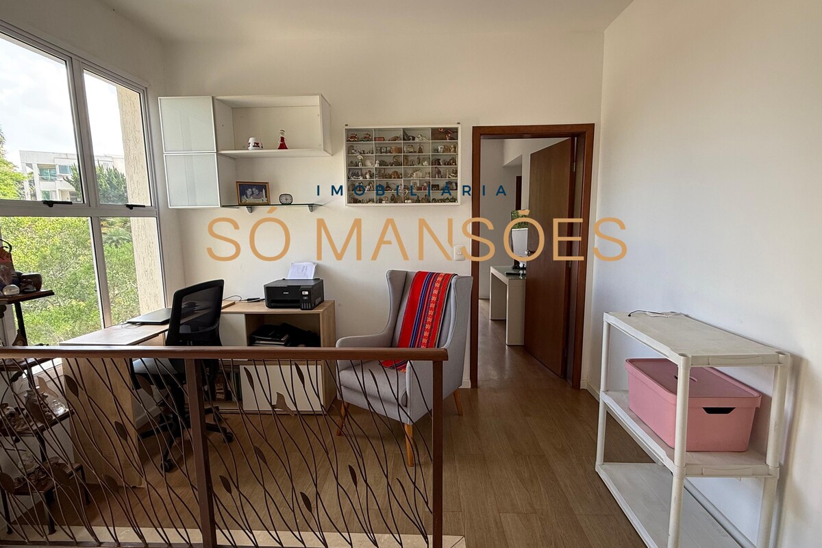 No segundo pavimento, há um escritório bem posicionado e três suítes confortáveis. A suíte master conta com varanda privativa, ar-condicionado e closet, oferecendo um espaço reservado para descanso.