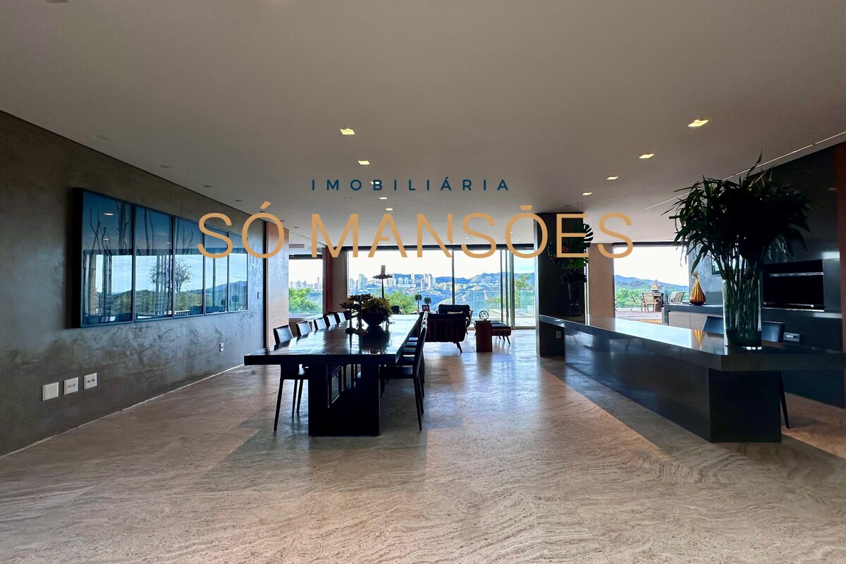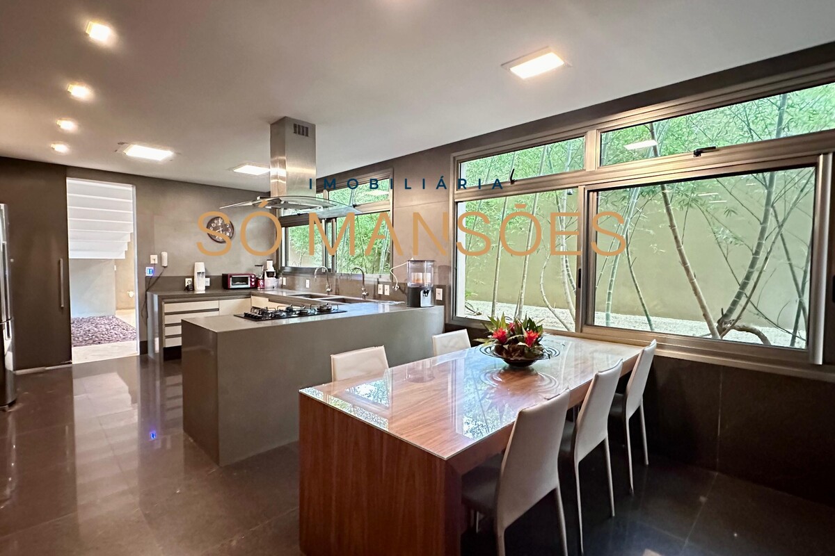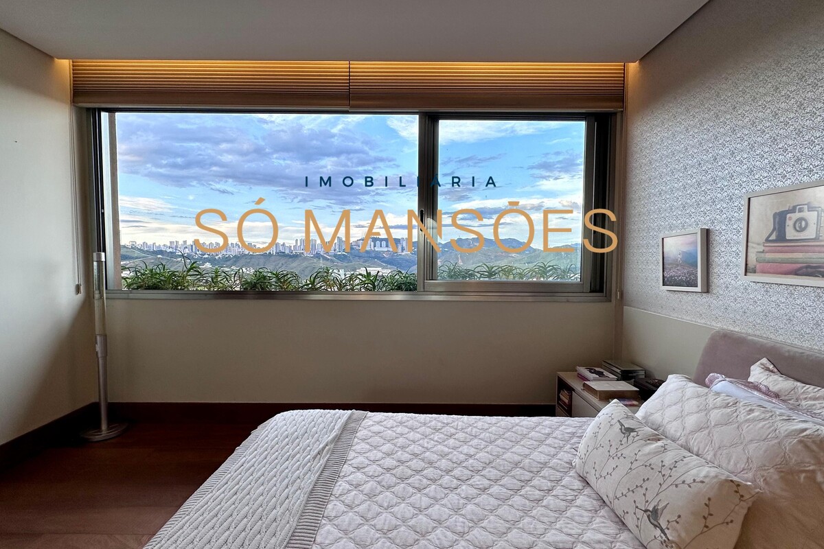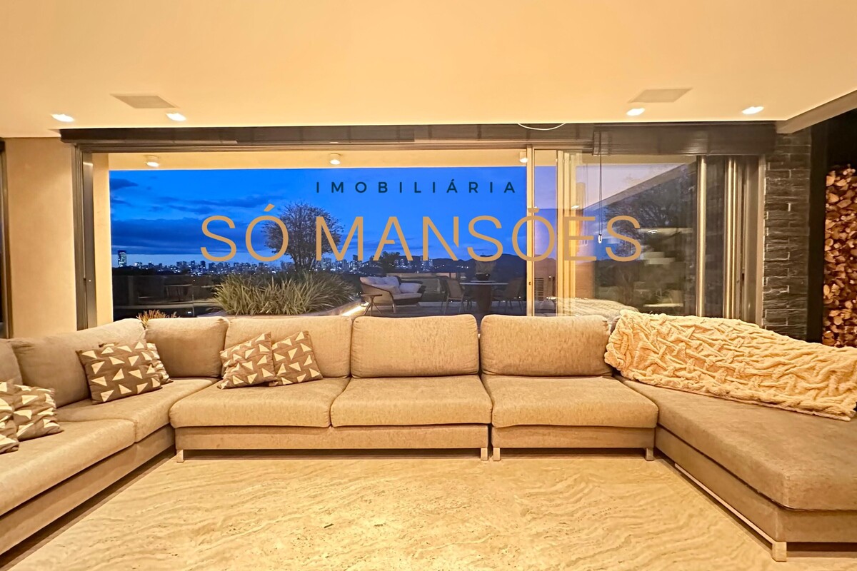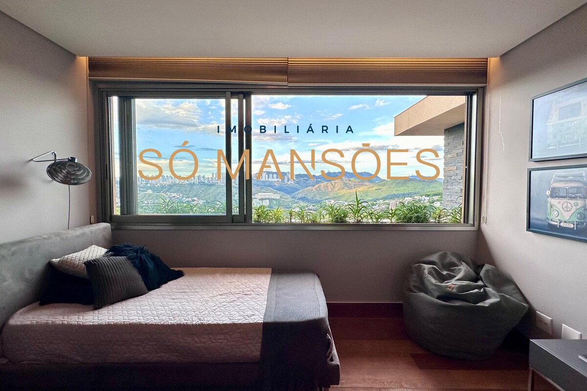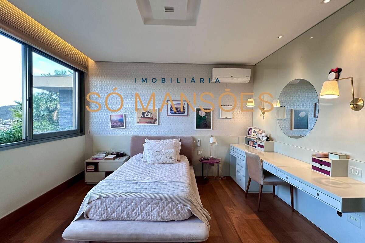No pavimento superior estão as 4 suítes, todas com vista. A suíte master dispõe de varanda reservada, closet generoso e banho com hidromassagem. O andar conta ainda com rouparia e cozinha de apoio.