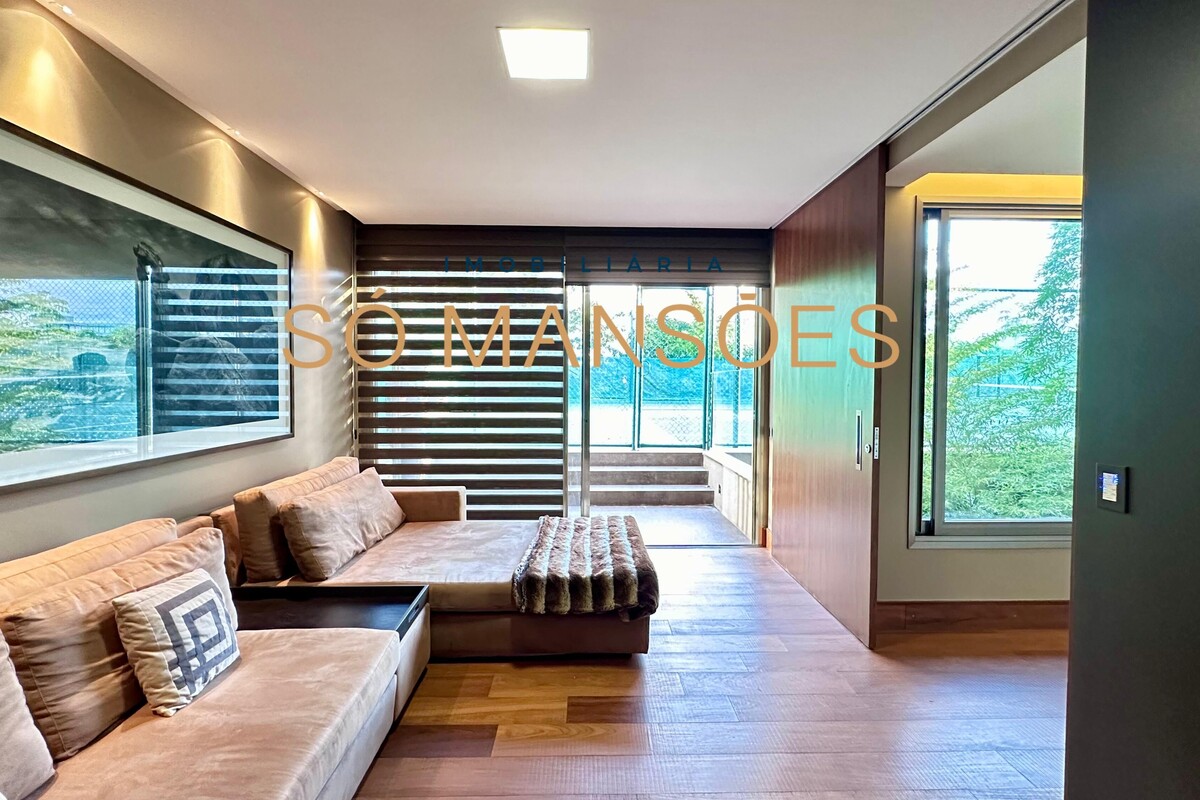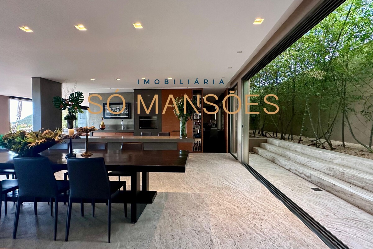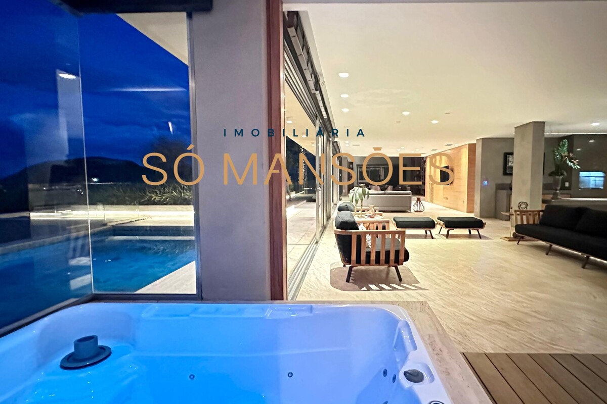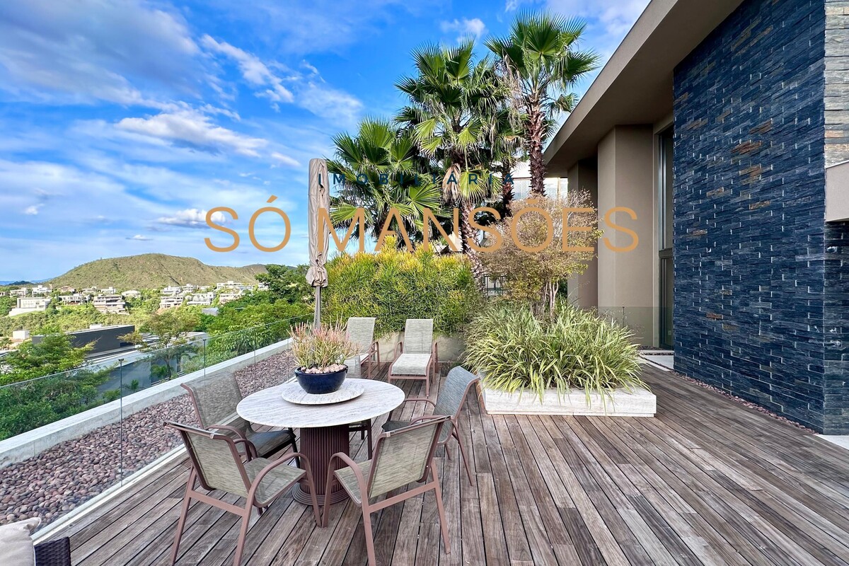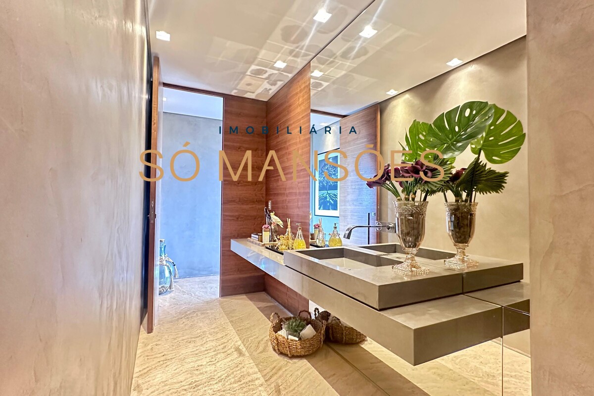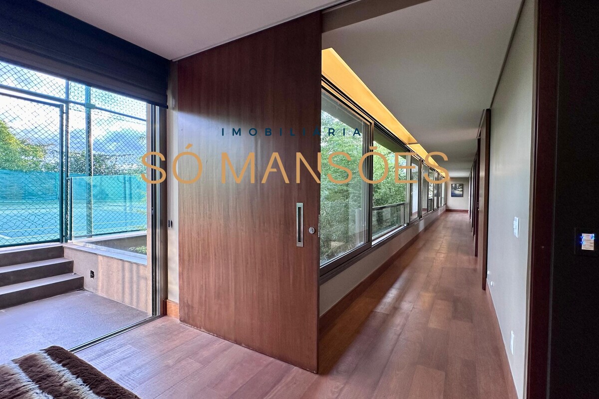 No pavimento superior estão as 4 suítes, todas com vista. A suíte master dispõe de varanda reservada, closet generoso e banho com hidromassagem. O andar conta ainda com rouparia e cozinha de apoio.