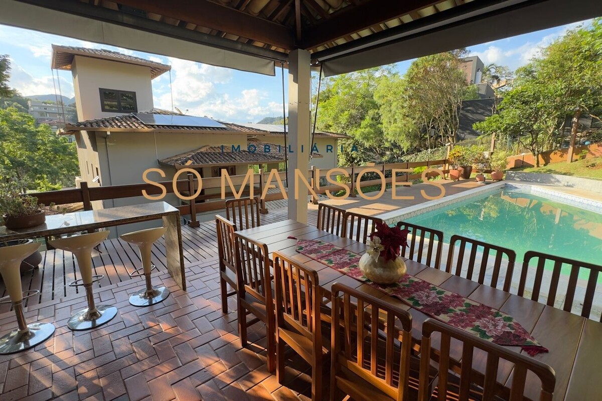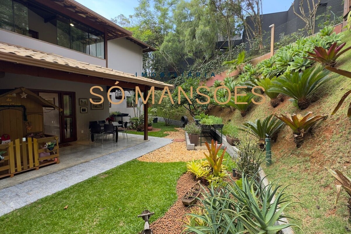 No Condomínio Vila Alpina, em Nova Lima, apresenta-se uma residência sólida, elegante e muito bem distribuída, situada em um lote de 1.137 m² com 621 m² de construção. A localização é um dos grandes diferenciais, ficando a poucos passos do clube e cercada por um paisagismo maduro que valoriza todos os ângulos da casa.